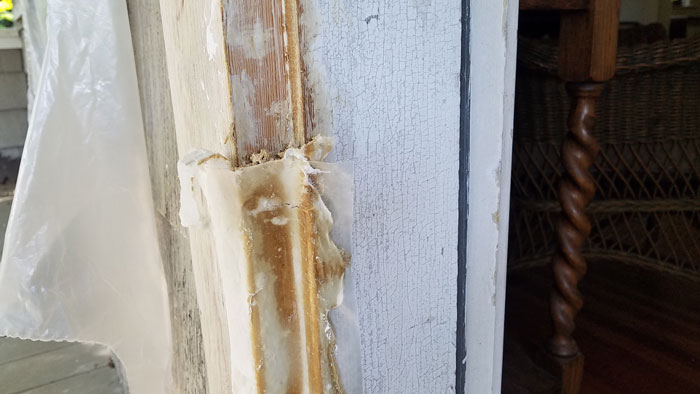 But this Long Island house has cedar shingle. The door frame I stripped had weathered crackle—a look that folks today will pay a price for when they buy dressers or book cases. No faux crackle here.