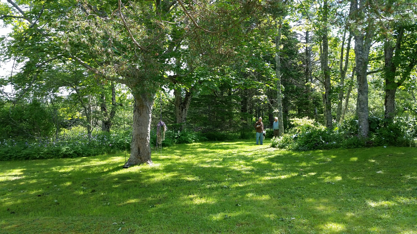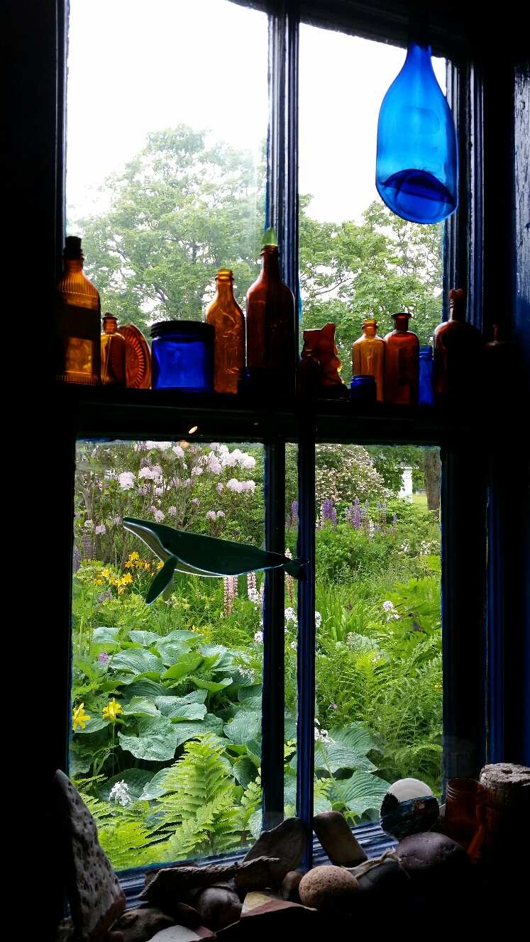 I don’t know how to thank our friend Clayton for having us for a few days in Nova Scotia at his fabulous house near Yarmouth. He is an amazing artist, collector, and decorator (as a retired theatre design professor) as well as an avid gardener. His five-acre property is a mini-art museum, with wildflower gardens edged by large patches of grass, easing into untouched woods. Birds, bohemians, and bugs love the place. Sitting on his outdoor veranda, I was abruptly checked out by a hummingbird visiting the honeysuckle bush. (Up close they are startling creatures—miniature fairies with thin, needlelike noses, fast-flickering, moving so fast our eyes can’t see them unless they momentarily still themselves in the air.)